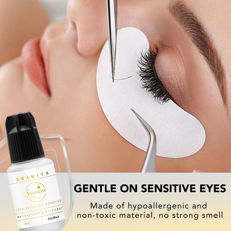Ne samo da je Swaniya ljepilo snažno i izdržljivo, već je i nježno na prirodnim trepavicama. Njegova formula s niskim jeku minimizira iritaciju i nelagodu, što je čini prikladnim za čak i najosjetljivije klijente. Osim toga, njegov aplikator koji se lako koristi omogućuje preciznu i nered na aplikaciji, tako da se možete s lakoćom usredotočiti na stvaranje lijepih trepavica.